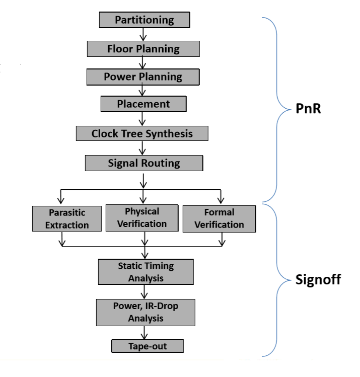 Structural representation to physical implementation (ie.,) Netlist to GDS.